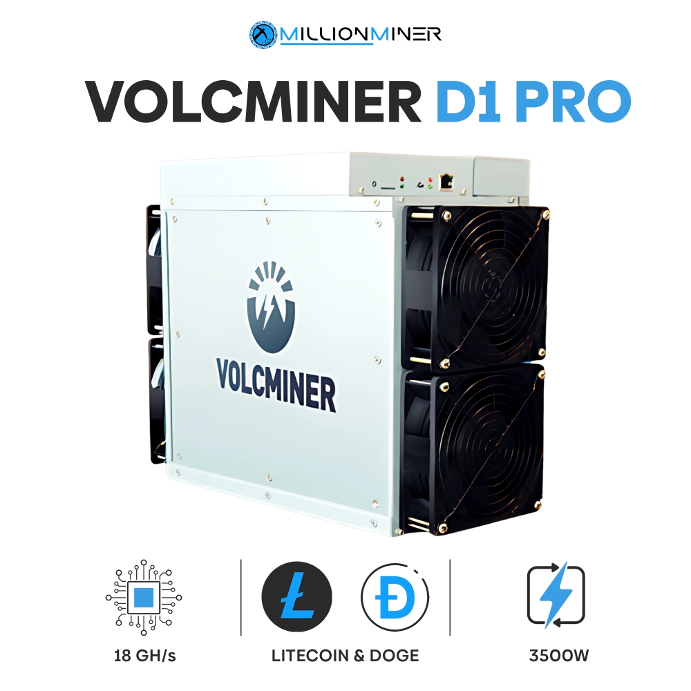 .container_desc { width: 80%; margin: auto; overflow: hidden; } .spec-table { width: 100%; border-collapse: collapse; } .spec-table th, .spec-table td { border: 1px solid #ddd; padding: 8px; text-align: left; } .spec-table th { background-color: #f2f2f2; } .pre-order-notice { background-color: #FFCC00; padding: 15px; border-radius: 5px; margin-top: 20px; } .embed-container { position: relative; padding-bottom: 56.25%; height: 0; overflow: hidden; margin-top: 20px; } .embed-container video { position: absolute; top: 0; left: 0; width: 100%; height: 100%; } iframe { width: 100%; height: 1200px; border: none; margin-top: 20px; } Unleash the Scrypt Beast – Pure Hashing Power at 18Gh/s Unleash next-generation Scrypt mining power with the Volcminer D1 Pro, a cutting-edge ASIC miner built specifically for serious DOGE and Litecoin (LTC) operators. Delivering a staggering 18 GH/s of hashrate, this powerhouse is engineered for high-throughput, dual-asset mining performance with exceptional energy control. Drawing only 3500W, the D1 Pro offers one of the most optimized performance-per-watt profiles on the market, making it ideal for scaling up your farm without scaling up your costs. Whether you’re upgrading from legacy units or expanding a commercial-grade operation, this miner balances raw compute with long-term power efficiency to maximize profitability in today’s dynamic crypto economy. With industrial-grade air cooling, the Volcminer D1 Pro maintains thermal stability even under sustained load, and its environmental tolerance from -20°C to 45°C and 10–90% humidity ensures robust operation across diverse locations and climates. Designed with a clean 335 x 220 x 325 mm chassis and weighing 20 kg, it integrates seamlessly into rack systems while keeping airflow optimized. Noise is rated at 75dB—ideal for warehouse setups or colocated facilities. The voltage range of 200–300V and plug-and-play Ethernet interface further simplify deployment into existing infrastructures. Released in June 2025, the D1 Pro represents the forefront of Volcminer’s commitment to high-performance Scrypt mining. Its latest-generation ASIC architecture is purpose-tuned for dual DOGE + LTC hashing efficiency, providing a stable and scalable solution that outpaces prior iterations in both energy economics and operational reliability. Whether you’re mining solo or through pools, this unit ensures that every watt you spend is generating maximum coin output. In an evolving mining landscape where margins matter more than ever, the D1 Pro equips you with the edge to stay profitable and scalable—day in, day out. VolcMiner D1 Pro – (18GH/s) Scrypt Miner – Technical Specifications Manufacturer VolcMiner Model D1 Pro Supported Algorithm Scrypt (Triple Mining: LTC, DOGE, BELL) Hashrate 18 GH/s Power Consumption 3500W Dimensions 335 x 220 x 325mm Weight 20 kg Operating Noise Level 75 dB Power Supply Unit Included Release Date 2025 June Warranty Period 6 months by the manufacturer Earn Passive Income with Our Hosting Service Our premium hosting service offers a simple way to earn passive income from mining. With our user-friendly dashboard at eps.millionminer.com, you can monitor your miners at any time and track their performance live. You can test the dashboard for free and see for yourself how easy it is to maximize your mining earnings. The D1 Pro (18Gh) stands as a powerhouse for serious miners demanding high-yield performance. With 18Gh/s of hashrate and excellent efficiency, it’s built to dominate Litecoin and Dogecoin mining at scale. When performance is everything, this beast delivers uncompromising results 24/7.