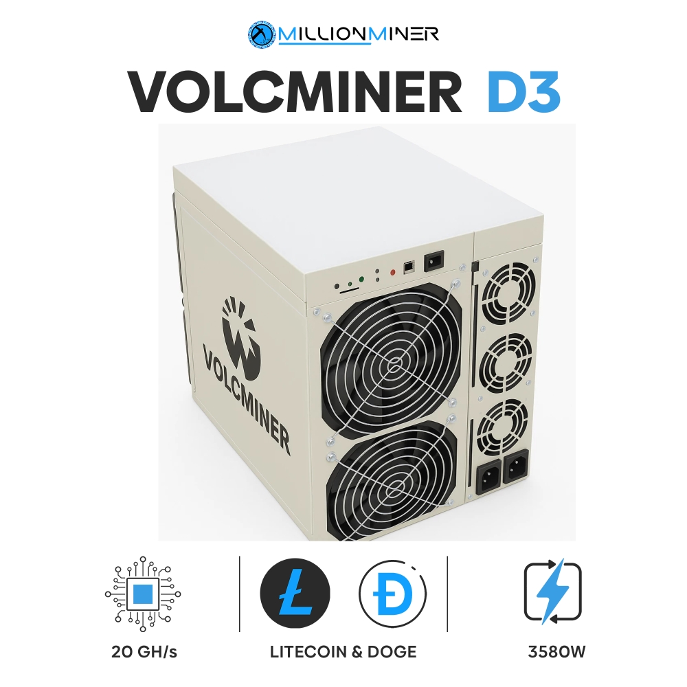 .container_desc { width: 80%; margin: auto; overflow: hidden; } .spec-table { width: 100%; border-collapse: collapse; } .spec-table th, .spec-table td { border: 1px solid #ddd; padding: 8px; text-align: left; } .spec-table th { background-color: #f2f2f2; } .pre-order-notice { background-color: #FFCC00; padding: 15px; border-radius: 5px; margin-top: 20px; } .embed-container { position: relative; padding-bottom: 56.25%; height: 0; overflow: hidden; margin-top: 20px; } .embed-container video { position: absolute; top: 0; left: 0; width: 100%; height: 100%; } iframe { width: 100%; height: 1200px; border: none; margin-top: 20px; } Unleash Scrypt Mining Power with the VolcMiner D3 20GH/s The VolcMiner D3 20GH/s represents the latest generation of professional ASIC hardware for Litecoin and Dogecoin mining, purpose-built for the Scrypt algorithm. Officially released in January 2026, this unit delivers an impressive 20GH/s hashrate while maintaining an optimized power consumption of 3580W, ensuring a highly competitive efficiency rating of 0.179J/MH. Designed for miners who prioritize stability and long-term profitability, the D3 combines raw power with carefully engineered thermal management, operating within a temperature range of 5–45 °C and tolerating humidity levels up to 95%. Its dual high-performance fans provide consistent cooling, while the robust chassis (measuring 385 x 217 x 316 mm and weighing 22 kg) underscores its industrial-grade durability. With a noise level of 75 dB, it is best suited for professional mining farms or hosting facilities, where continuous uptime and reliability are essential. The Ethernet interface ensures seamless network integration, allowing miners to manage operations with precision. Whether you are scaling a mining farm or adding a top-tier machine to your setup, the VolcMiner D3 stands out as a forward-looking investment in the Scrypt mining ecosystem. Combining efficiency, longevity, and unparalleled performance, it positions itself as a cornerstone device for serious Dogecoin and Litecoin miners who want to maximize their ROI in 2026 and beyond. VolcMiner D3 – (20GH/s) Scrypt Miner – Technical Specifications Manufacturer VolcMiner Model D3 Supported Algorithm Scrypt (Triple Mining: LTC, DOGE, BELL) Hashrate 20 GH/s Power Consumption 3580W Dimensions 385 x 217 x 316mm Weight 22 kg Operating Noise Level 75 dB Power Supply Unit Included Release Date 2026 January Warranty Period 6 months by the manufacturer Earn Passive Income with Our Hosting Service Our premium hosting service offers a simple way to earn passive income from mining. With our user-friendly dashboard at eps.millionminer.com, you can monitor your miners at any time and track their performance live. You can test the dashboard for free and see for yourself how easy it is to maximize your mining earnings. The VolcMiner D3 is more than just a miner – it’s a strategic tool for achieving consistent results in the fast-paced world of crypto. With unmatched efficiency and power, it delivers stable mining for years to come. For miners seeking reliability, profitability, and performance, the D3 sets the standard.